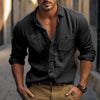 Introducing our Men's Solid Color Double Pocket Cotton and Linen Long Sleeve Shirt, a classic wardrobe staple designed for both style and comfort.