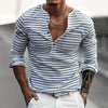 Men's Striped Henley Collar Long Sleeve Casual T-shirt 00046965Z