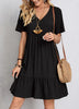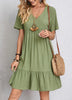 The relaxed, tiered shape drapes without clinging—softly skimming curves and inviting movement.